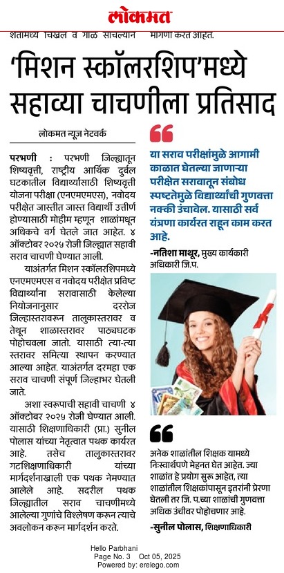 मिशन स्कॉलरशिपच्या सरावातून गुणवत्ता प्रमाण वाढीसाठी प्रयत्न